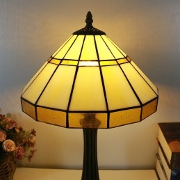 Żółta lampa stołowa w stylu Tiffany'ego 12 cali witraż lampka na biurko kreatywna dekoracja artystyczna do domu