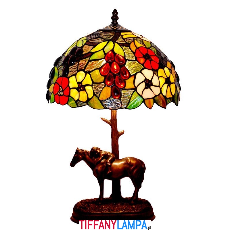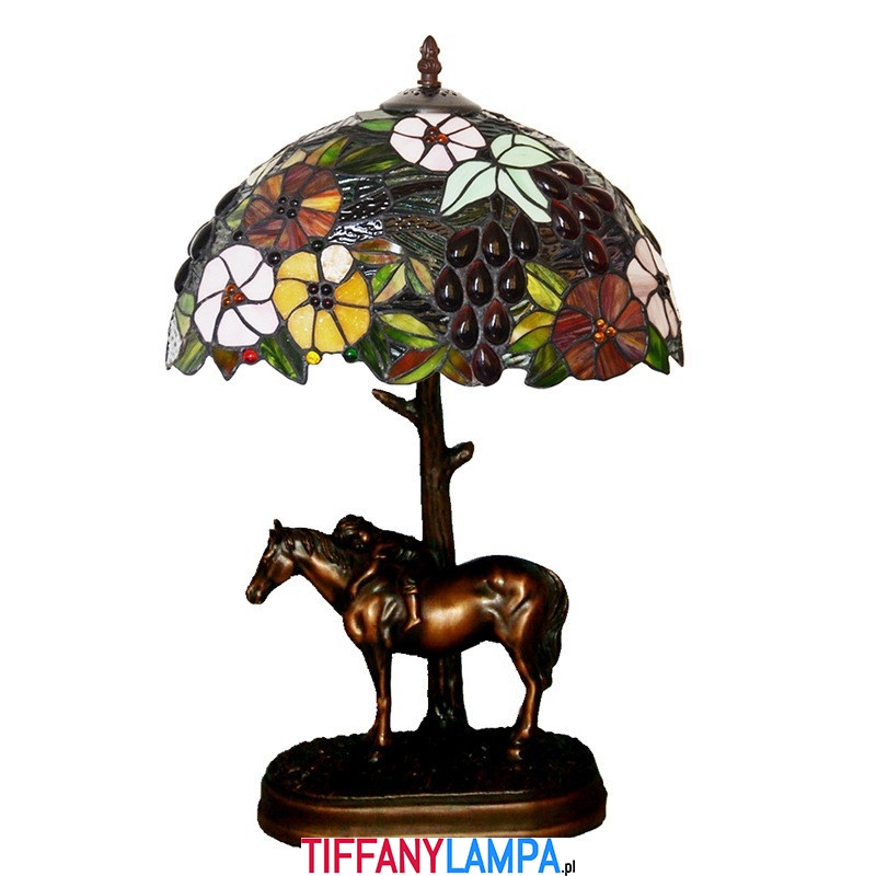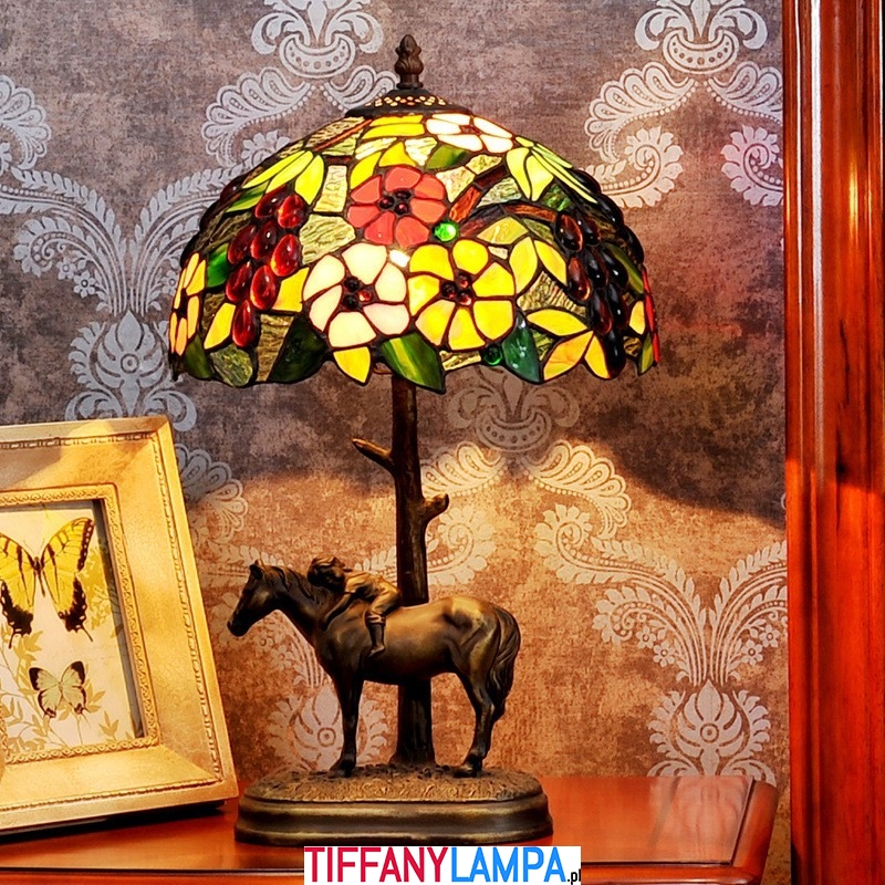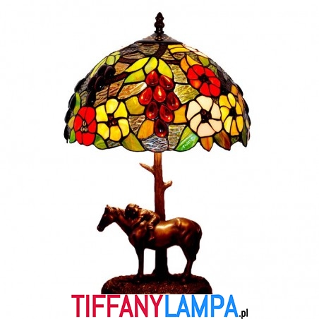 Lampa stołowa witrażowa Tiffany z motywem konia wiejskiego 30 cm